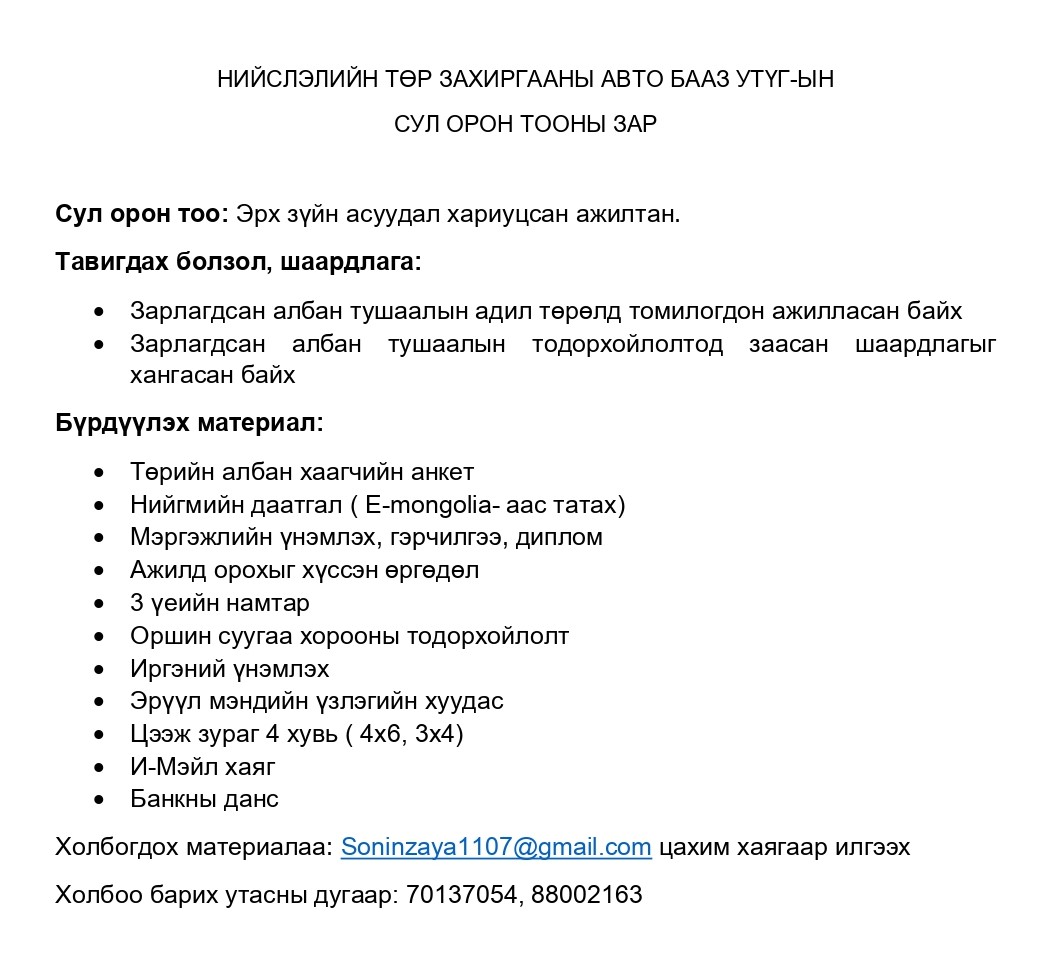 НЭЭЛТТЭЙ АЖЛЫН БАЙР (ЭРХ ЗҮЙН АСУУДАЛ ХАРИУЦСАН АЖИЛТАН)