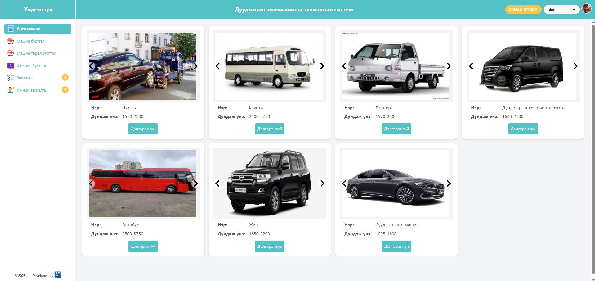 - Нийслэлийн Төр захиргааны авто бааз УТҮГ нь Төрийн хэмнэлтийн тухай хууль, Засгийн газрын 2022 оны 204 дүгээр тогтоол, Нийслэлийн Засаг даргын 2022 оны А/789 дүгээр захирамжийг хэрэгжүүлэх ажлын хүрээнд UB ERP Дотоод удирдлагын системд “Дуудлагын автомашины захиалгын систем”-ийг 2022 оны 12 сараас эхлэн үйл ажиллагаандаа шинээр нэвтрүүлэн ажиллаж байна.